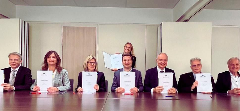 Los rectores de las nueve universidades que constituyen la alianza EURECA-PRO firman el acuerdo que permite dotar de estructura permanente y base legal a la alianza, garantizando su continuidad, reforzando la colaboración y crecimiento y abriendo la puerta a la captación de financiación