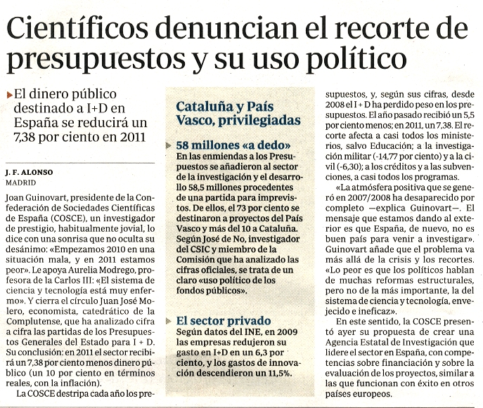 Científicos denuncian el recorte de presupuestos y su uso político.