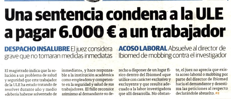 Portada/ Una sentencia condena a la ULE a pagar 6.000 euros a un trabajador