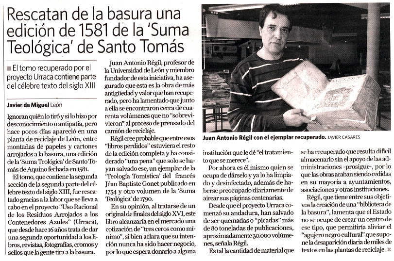 Proyecto Urraca: Rescatan de la basura una edición de 1581 de la "Suma Teológica" de Santo Tomás.