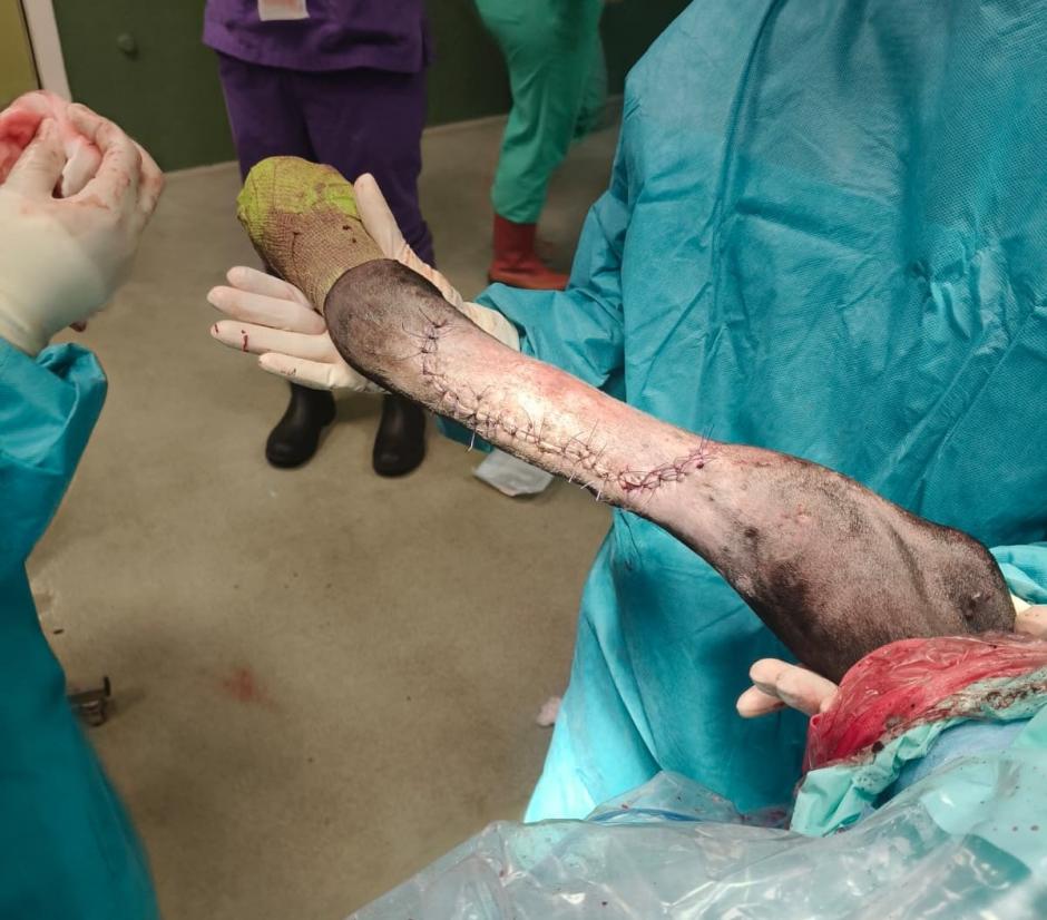 La intervención, liderada por Débora Jorge Casado, jefa del servicio de Medicina y Cirugía Equina y por Norberto González, veterinario especialista en cirugía ortopédica y traumatología, consistió en la estabilización quirúrgica de la fractura mediante la colocación de dos placas y tornillos, una técnica que permitió reducir y fijar correctamente la lesión ósea.