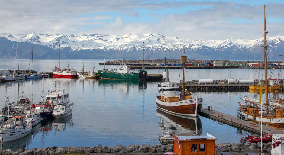 (Imágenes: 1.- Detalle del cartel anunciador de la conferencia 2.- Logo de la Cátedra Almirante Bonifaz de la ULE 3.- Puerto pesquero en una zona ártica)