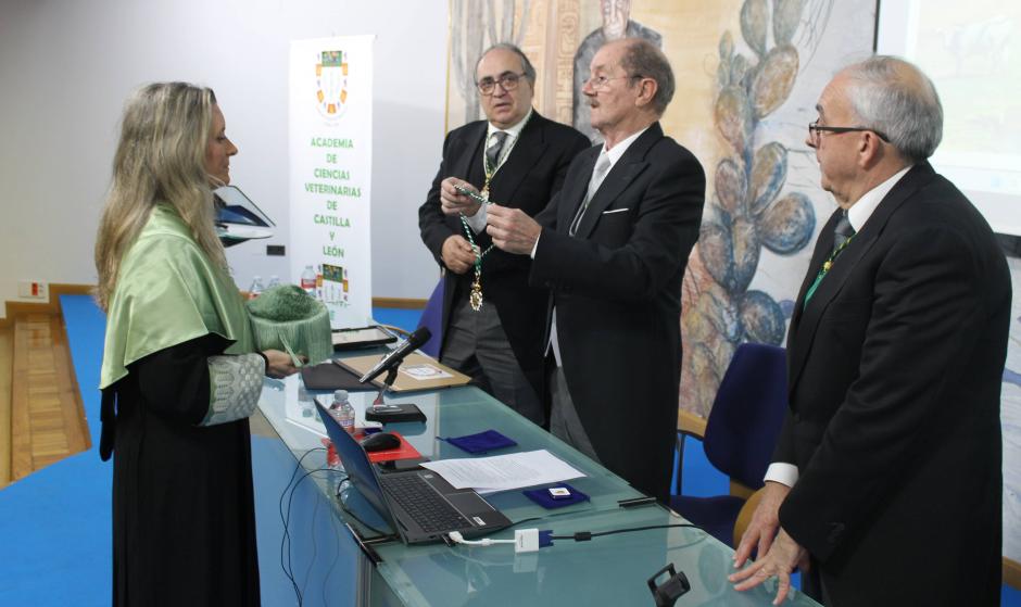 (IMÁGENES: 1.- La nueva académica tras recibir el diploma acreditativo de su incorporación a la AVETCYL 2 y 3.- Dos momentos de la intervención de Paula Martínez Ros 4.- Imposición de la medalla de académica)