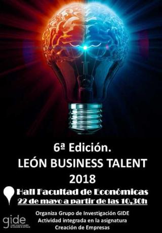 La Facultad de Ciencias Económicas y Empresariales de la Universidad de León (ULE) presentará el próximo martes 22 de mayo la VI edición de León Business Talent 2018, un evento anual sobre emprendimiento donde los alumnos de Creación de Empresas presentan sus propuestas de negocio con el fin de atraer inversores y adeptos a su aventura empresarial. Esta iniciativa es impulsada cada edición por el Grupo de Investigación en Dirección de Empresas de la ULE y coordinada por los profesores Daniel Alonso-Martínez y Montserrat Méndez Redondo.