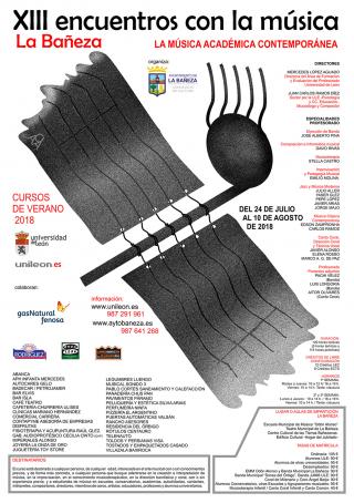 El curso incluido en la oferta estival del programa UNILEÓN 2018 propiciará que La Bañeza se convierta durante tres semanas en una de las ciudades más dinámicas en el aspecto cultural. El ciclo cuenta ya con 100 alumnos matriculados y mantienen abierto el plazo de inscripción, que puede formalizarse a través de la web de la ULE. Dirigido por Mercedes López Aguado, profesora de la Facultad de Educación de la ULE y el compositor y musicólogo Juan Carlos Ramos Díez, el programa está destinado a alumnos universitarios, músicos, artistas, profesionales y resto de personas interesadas.