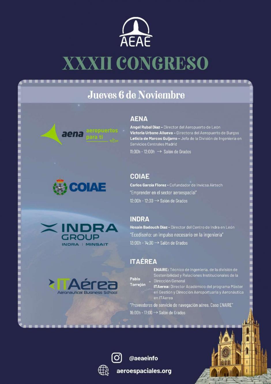 A lo largo de los cuatro días del congreso, los asistentes participarán en ponencias y actividades formativas impartidas por empresas punteras del sector aeroespacial, muchas de ellas con una destacada implicación en la provincia leonesa, entre ellas, estarán presentes Aena, COIAE, Indra o IT-Aérea. Además, se celebrará la defensa de los posicionamientos elaborados por las distintas delegaciones universitarias participantes.