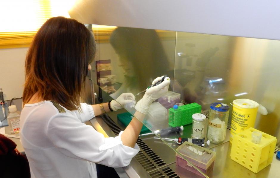 (Fotografías Archivo: segunda y tercera: investigadoras de la ULE en distintas salas del Instituto de Biomedicina)