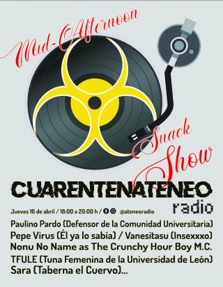 La TFULE, Tuna Femenina de la Universidad de León volverá a participar en ‘Cuarentenateneo’ a raíz de la grabación de “una preciosa canción que presentarán en Ateneo Radio este jueves, y nos explicarán todo el trabajo y las dificultades de estar cada una en un lugar del mundo... de Astorga a Londres, de Luarca a Villaquilambre...”, detalla David Fernández quien no se olvidará de llamar a ‘Nonu No Name’, el hayatola del Hip Hop, para confeccionar una playlist que no dejará indiferentes a los internautas.