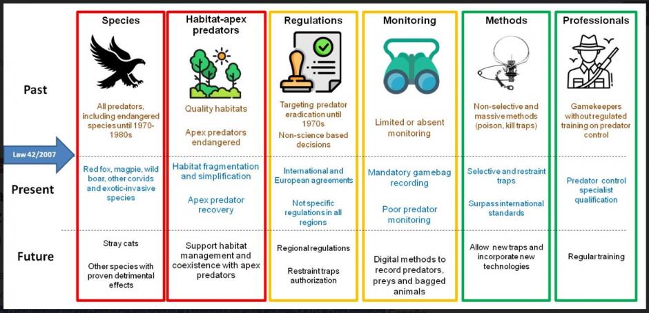 El proceso finalizó en 2007, con la Ley 42/2007 del Patrimonio Natural y la Biodiversidad, seguida de la publicación de las directrices para el control de depredadores, que incluían dos puntos clave: el permiso de uso de métodos de contención que superen los estándares internacionales de trampeo y la regulación de la formación necesaria para obtener la cualificación de especialista en control de depredadores.