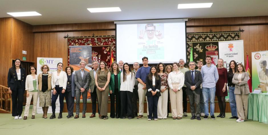 Foto de familia de la final del concurso 3MT organizado por la Escuela de Doctorado de la Universidad de León.